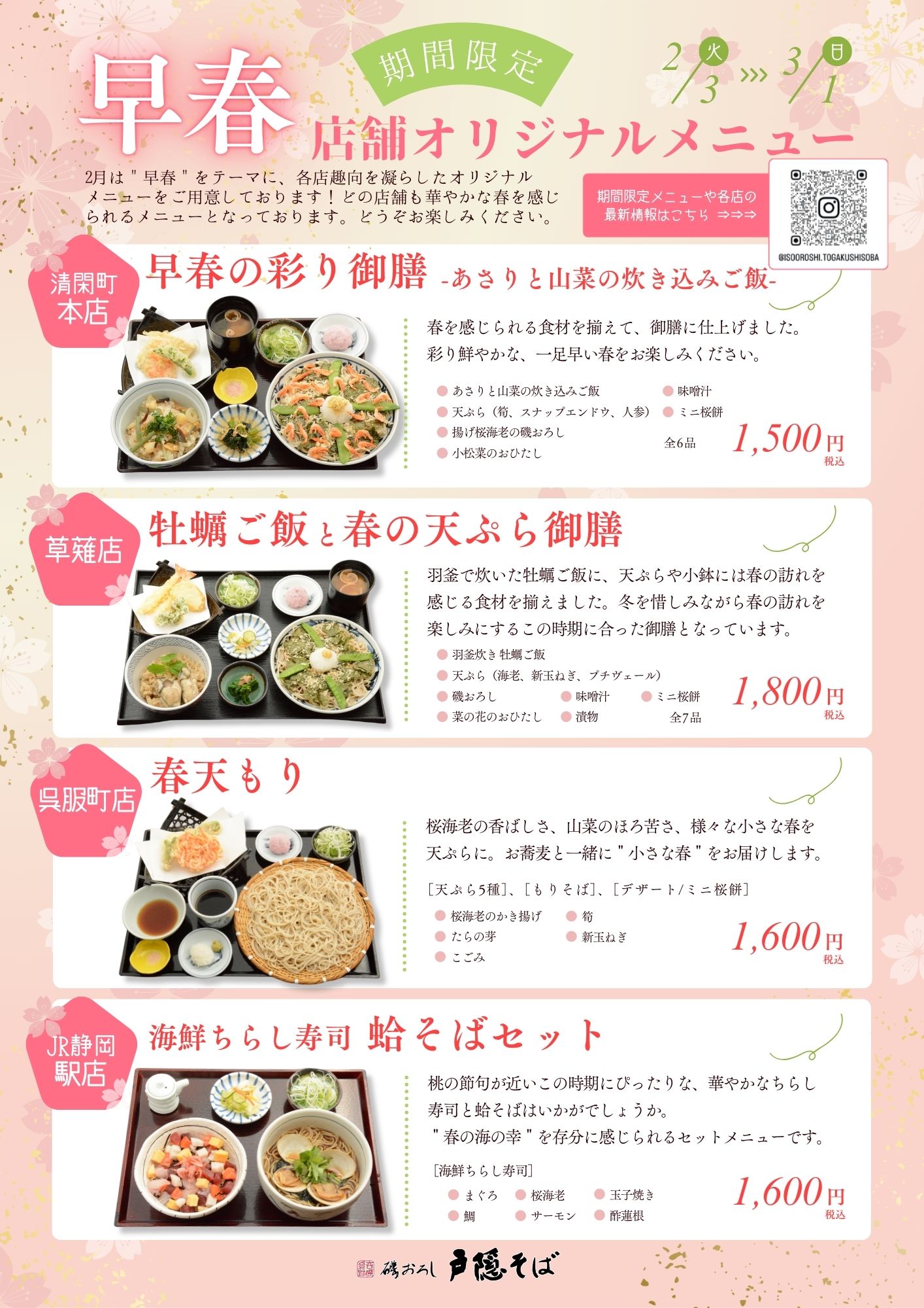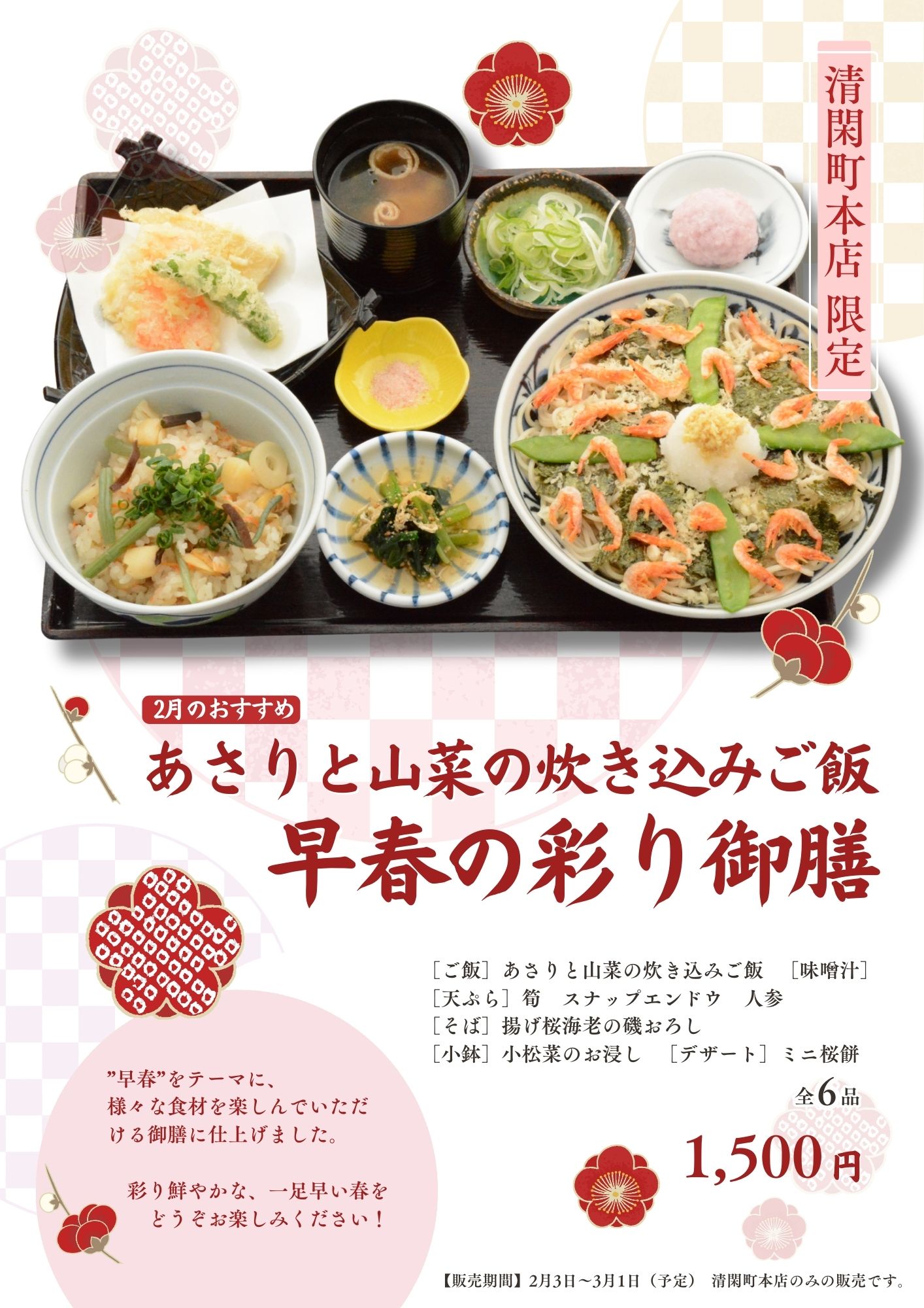 各店、趣向を凝らした春を感じるメニューをご用意しています。ぜひお楽しみください! 清閑町本店▼